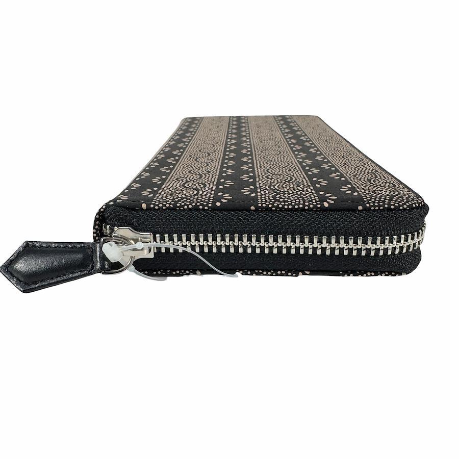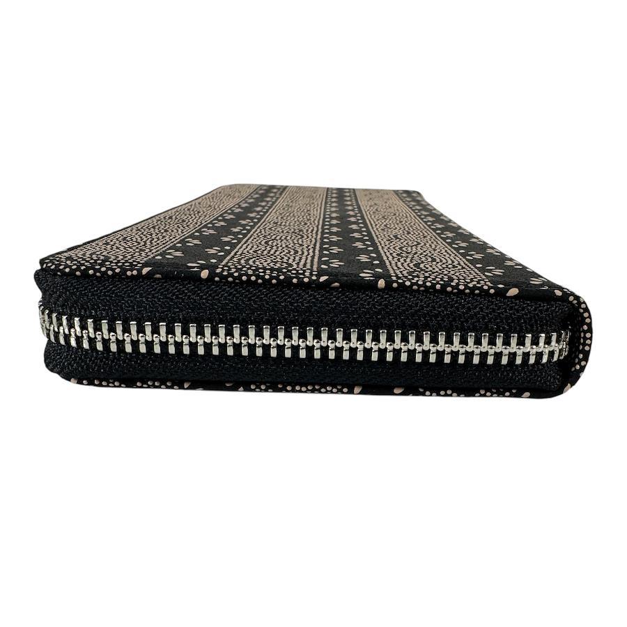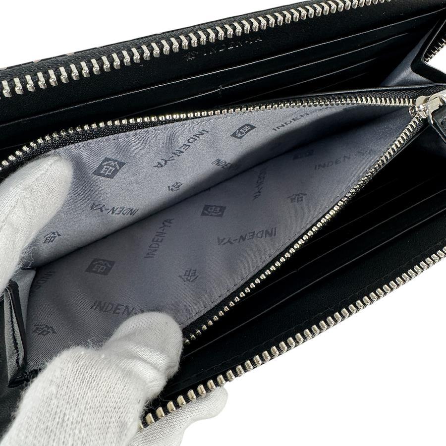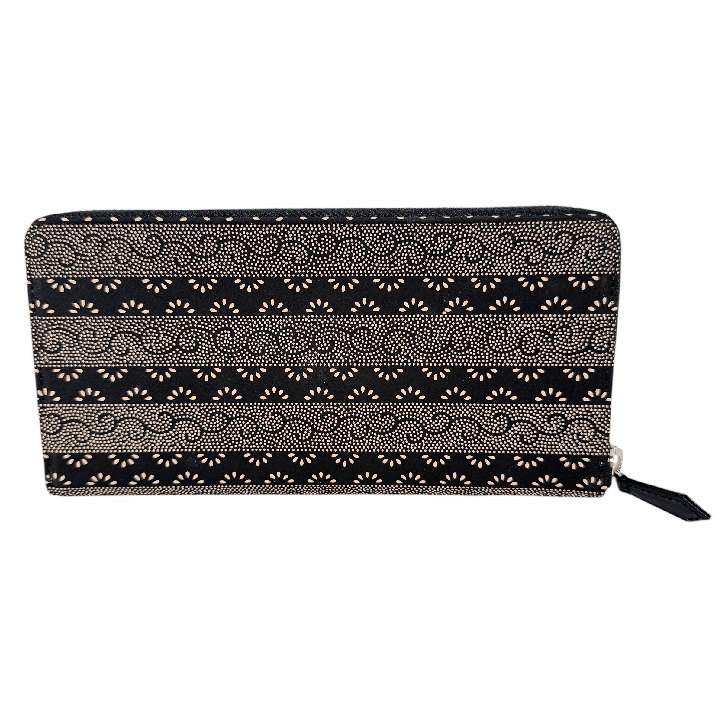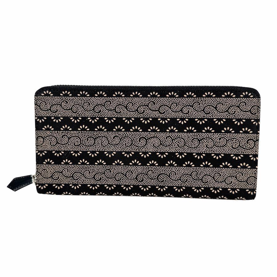 Brand new, unused Inden-ya Inden long wallet with round zipper and arabesque pattern. Black. J0662