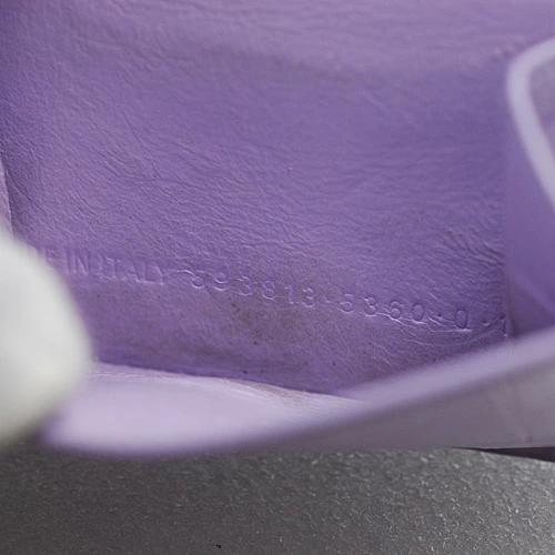 | コメント | BALENCIAGA クロコ型押し CASH ミニウォレット。 手のひらに収まる、ミニサイズながらも、紙幣、硬貨、レシート等が一通り収納可能。 ラベンダーは、バレンシアガ公式のネームではございません。 見たままでお伝えすると、ラベンダーカラーと言った様なお色です。 |