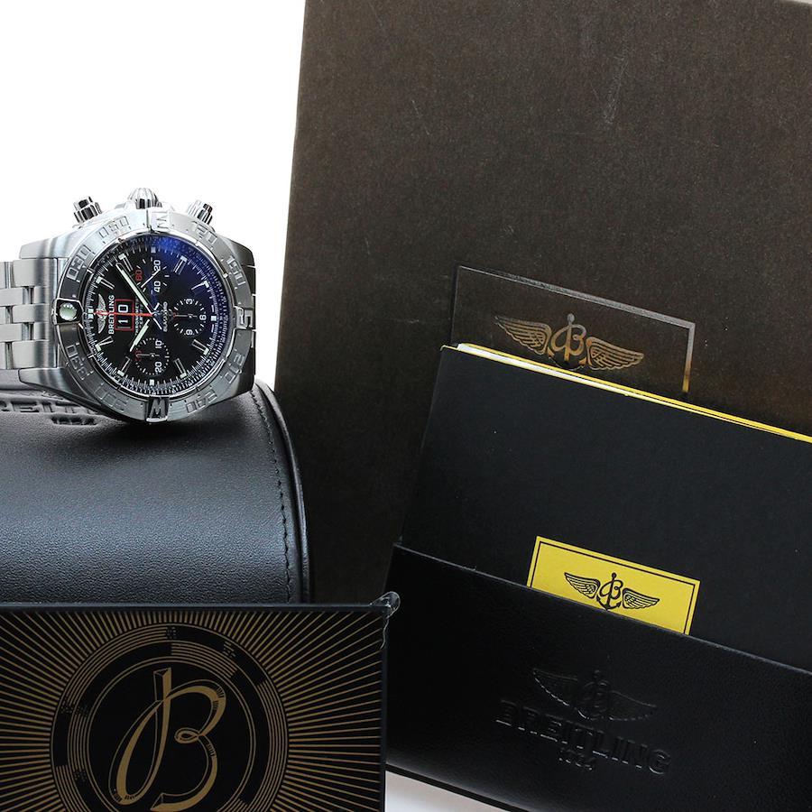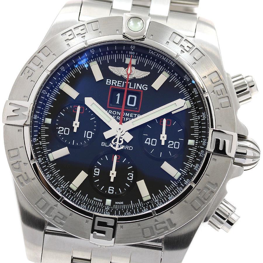■商品情報ブランド: ブライトリング/BREITLINGモデル名: クロノマット ブラックバード対象: メンズ素材: SS × SS文字盤色: ブラックムーブメント:自動巻きRef.No: A44360シリアル:17**/2000機能・特徴:デイト,クロノグラフ,スモールセコンド付属品:外箱,内箱,保証書(カード),取扱説明書ケースサイズ(w):約 44mmベルトサイズ:約 20.5cm※ベルトサイズとは、ケース部分も含めた総腕回りのサイズになります。ラグ幅: 22mm日差: -4秒/日 ※参考値OH歴: 弊社では実施しておりません。保証書の情報: 2013/08/30