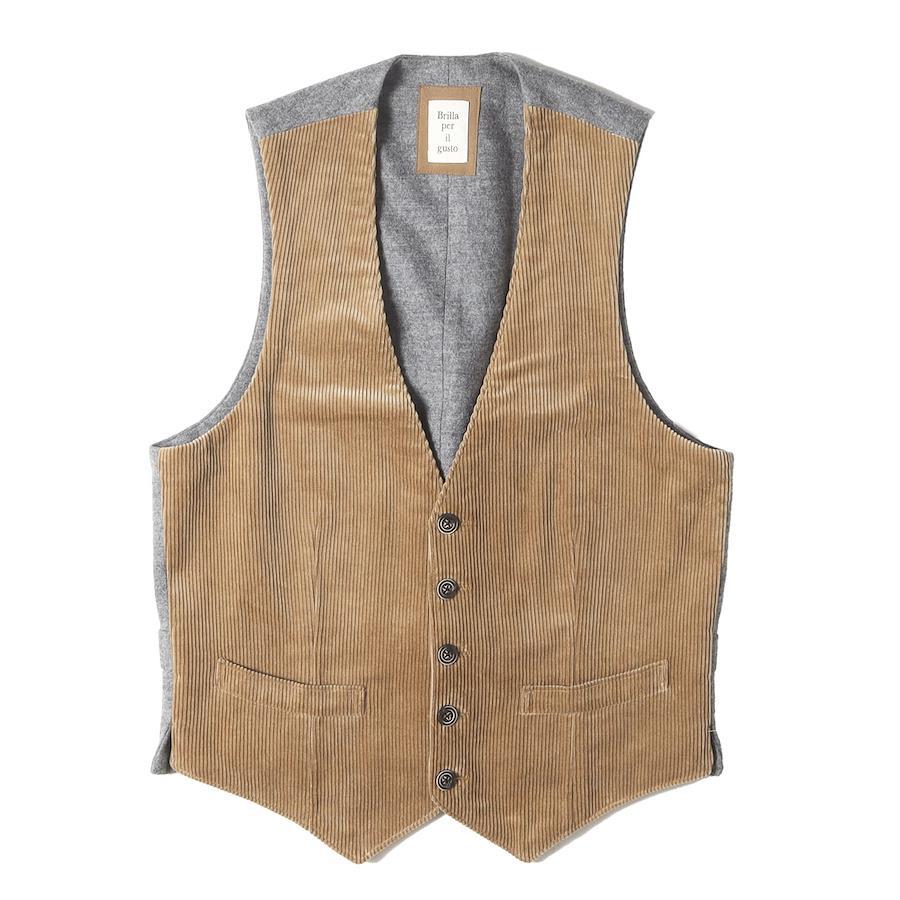 Brilla per il gusto Vest, Brown, Size XS | Corduroy and Wool Combination Gilet/Vest | Made in Japan | Layered Top [Men's] [Pre-owned] [K4618]