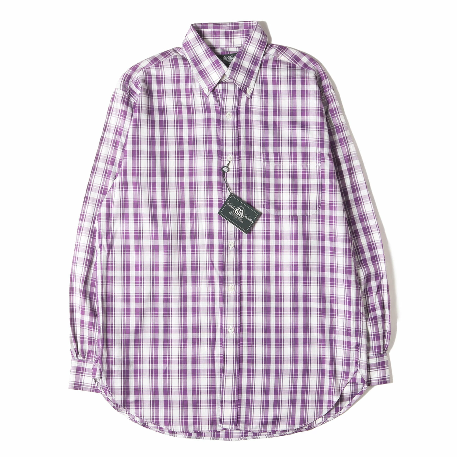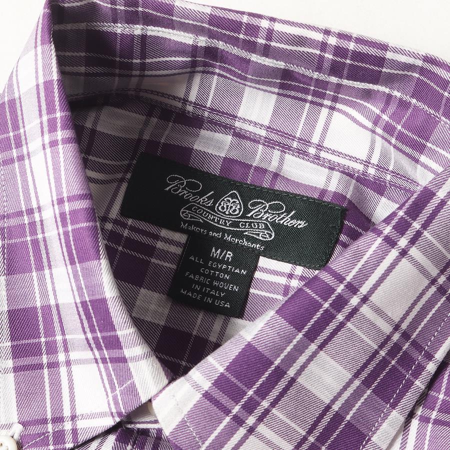 BROOKS BROTHERS Men's Check Cotton Shirt in Purple and White, Sizes M/R, Gusseted, Made in USA, Long Sleeve Casual Shirt [K4615]