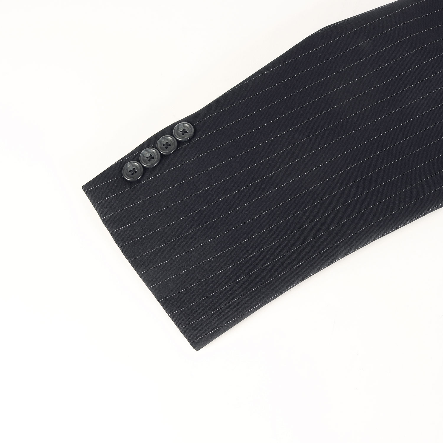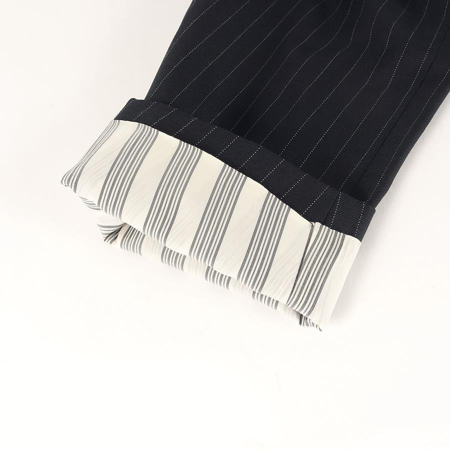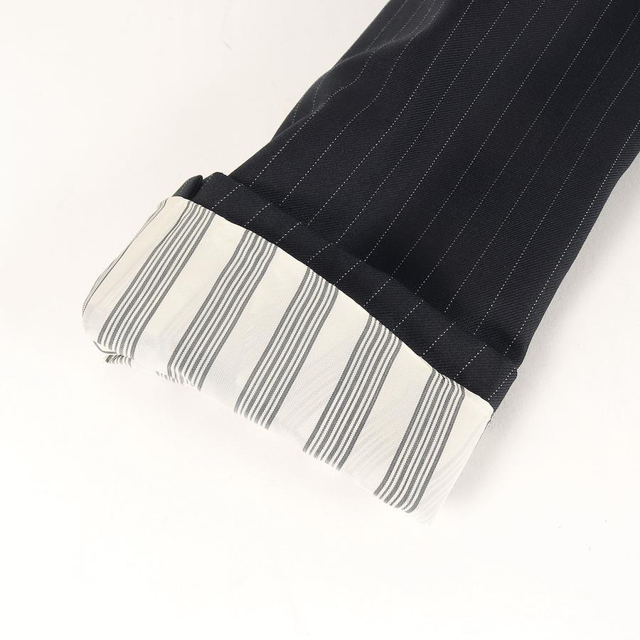 | 商品説明 | ・しっかりとしたハリ感と肉厚のあるウール/ポリエステル混紡生地 ・品のあるピンストライプ柄ジャガード ジャケット ・フロント2つボタン ・総裏地、袖裏ストライプ裏地 ・袖先開き見せ4つボタン ・フロントダーツ ・センターベント仕様 スラックス ・ストレートシルエット ・ターンアップヘム ・ジッパーフライ |