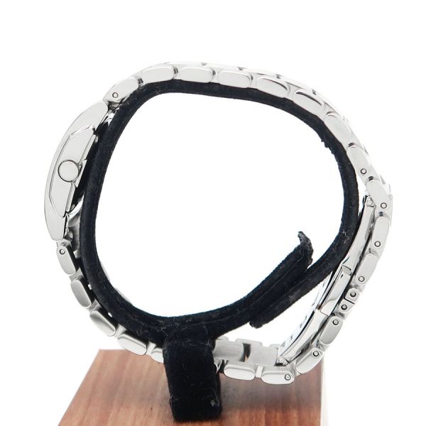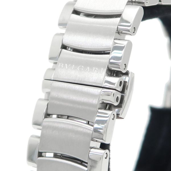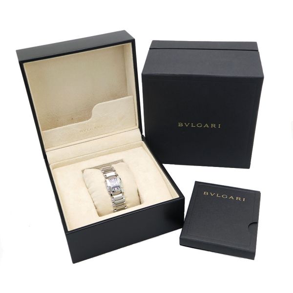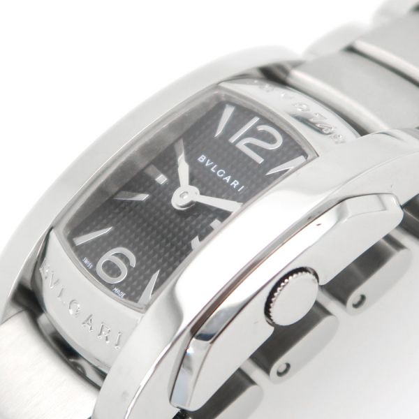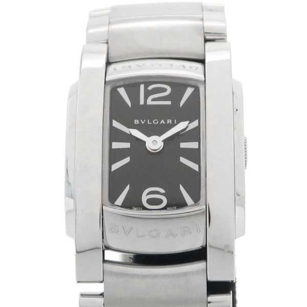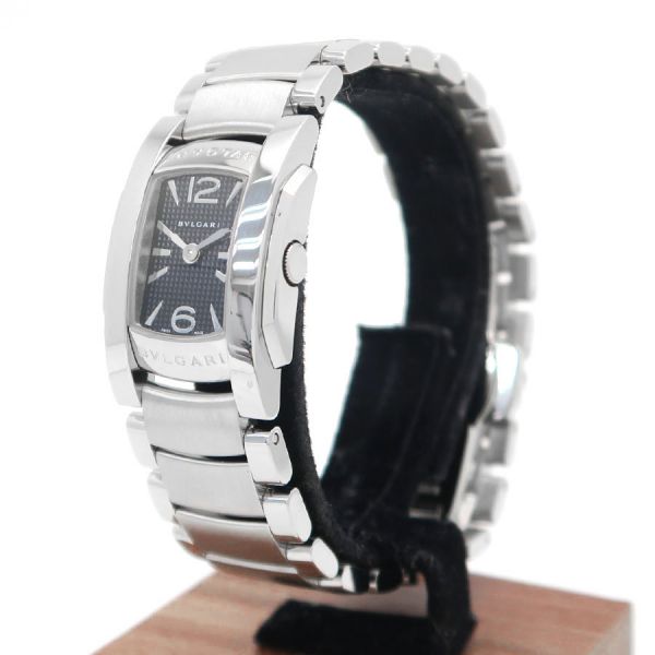 アショーマはイタリア語で『主張』を意味し、丸と四角を融合した独特で斬新なケースデザインが特徴です。スリムで洗練された雰囲気を持った、非常に独特で個性の強い時計で、その名の通り存在感抜群です。ブラックのギョーシェ文字盤に12と6のアラビアインデックスがブルガリらしさを感じられます。当社提携の時計修理工房にて外装の新品仕上げと電池交換を行っております。針に擦れ、ケースに擦れ、裏蓋に擦れ、ブレスレットに擦れがございます。ブルガリの定番モデル アショーマをお見逃し無く。