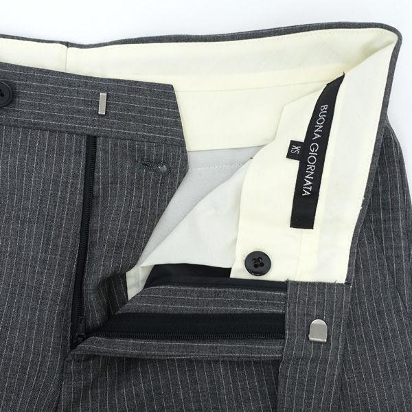 ・メーカー :BUONA GIORNATA / ボナジョルナータ・製品型番 :02-02ST51・サイズ :【上】:-,表記サイズ:XS,肩幅 (約cm):40,身幅 (約cm):42.5,着丈 (約cm):68,袖丈 (約cm):62,【下】:-,表記サイズ:XS,ウエスト (約cm):72,太腿幅 (約cm):26.5,股上 (約cm):23,股下 (約cm):88,裾幅 (約cm):17,・色(柄)の系統:グレー・デザイン :(メンズ)スーツ・素材 :毛50% ポリエステル50%