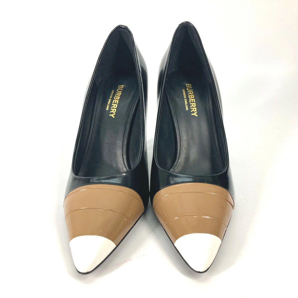 BURBERRY 8008584 Tricolor Heeled Shoes, Leather Pumps, Women's, Beige, Unused [Pre-owned]