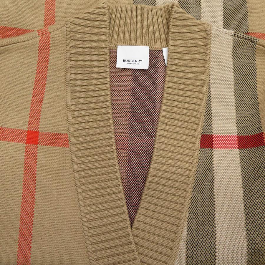 BURBERRY 8039153 Nova Check Jacquard Cardigan, Light Brown/Beige, Size M, Excellent Condition, Women's, Pre-owned