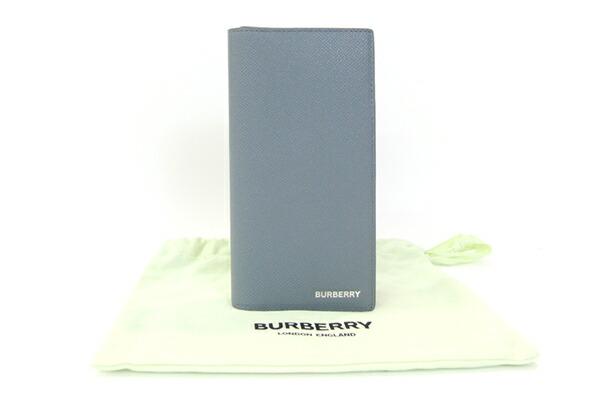 バーバリー二つ折り長財布キャベンディッシュ8074278グレーレザー中古ロングウォレットロゴメンズ男性BURBERRY