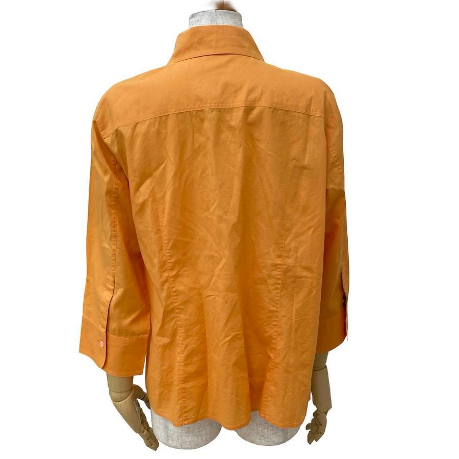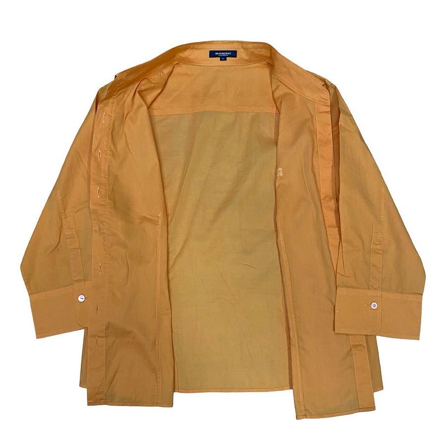 BURBERRY Shadow Horse Embroidered Ruffle Cotton Long Sleeve Shirt, Size 46, Women's, Orange, Sizes 35-12