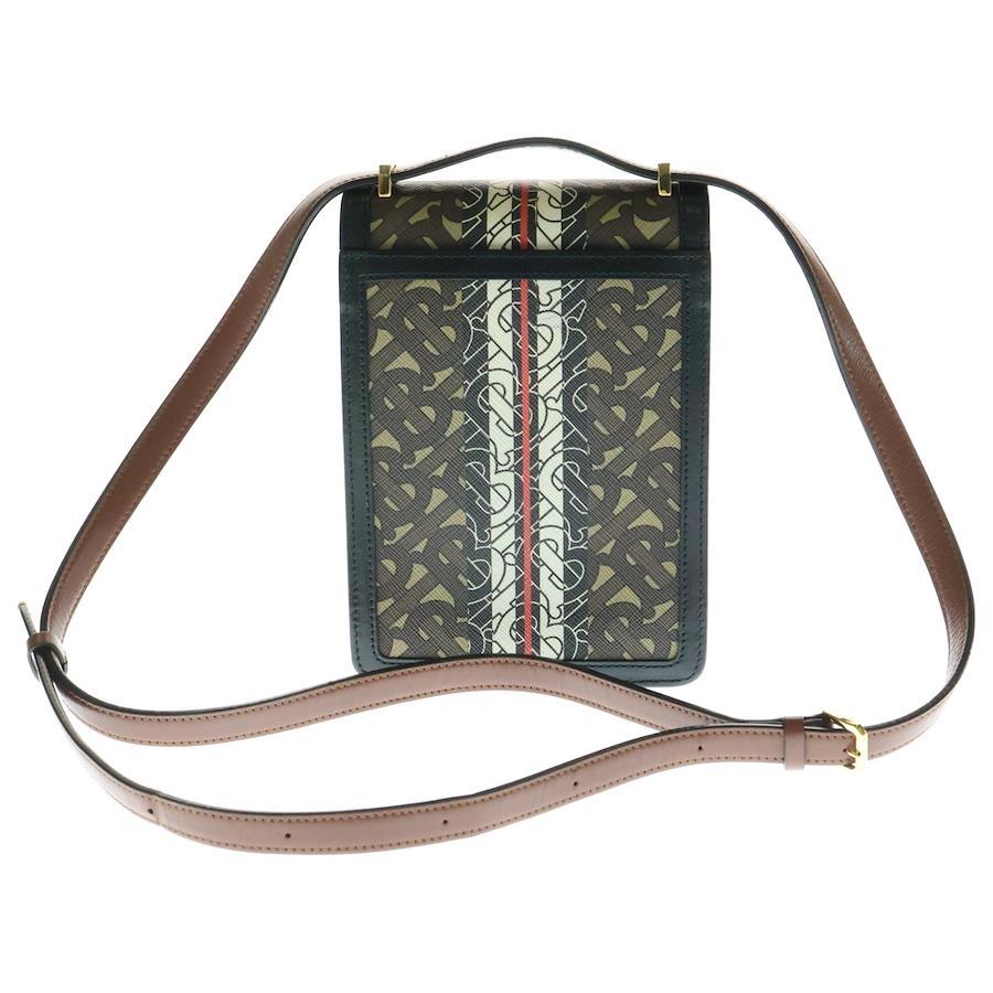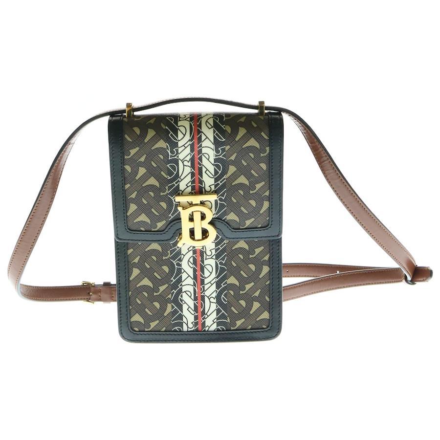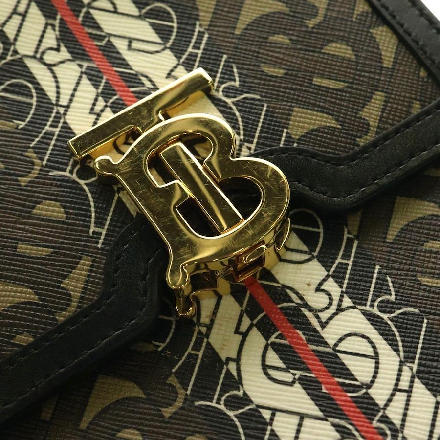 [モデル]TBロゴプレート ロビン モノグラムストライプ PVC レザー ショルダーバッグ ポーチ ポシェット ゴールド金具 ブラック/ブラウン