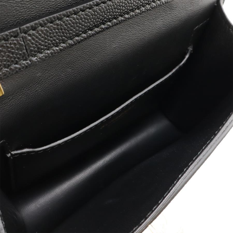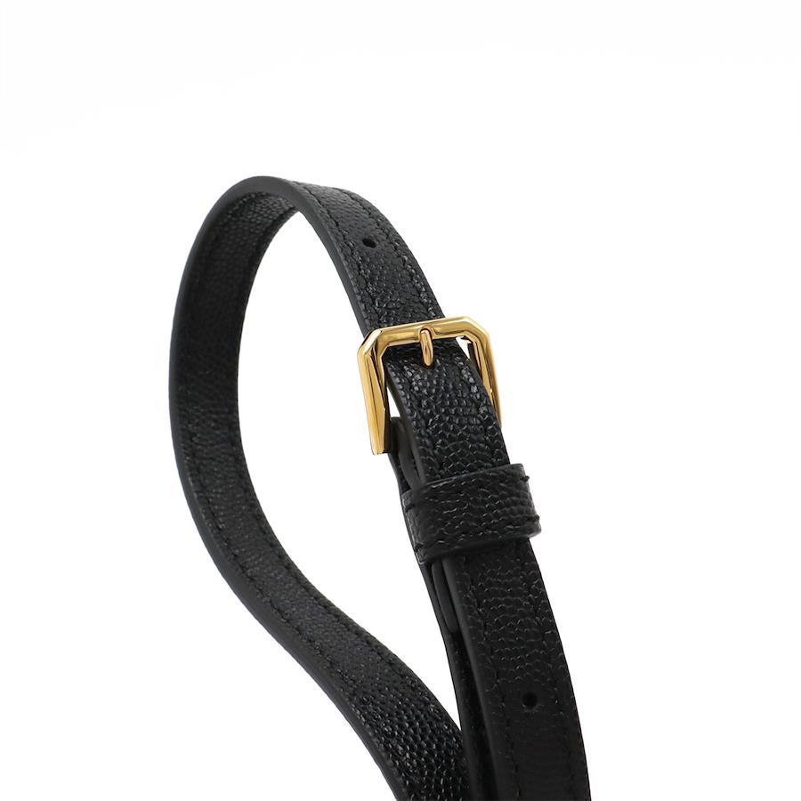 【商品説明】[サイズ]W17cm H13cm D5.5cm ショルダーストラップ最長約111cm(5段階調節可、金具含む)[材質]レザー[カラー]ブラック[仕様]前面ポケット1、内側ポケット1[付属品]ショルダーストラップ[重さ]約360g
