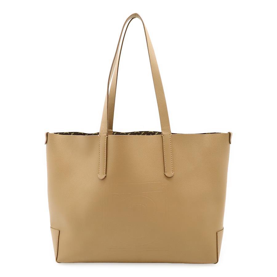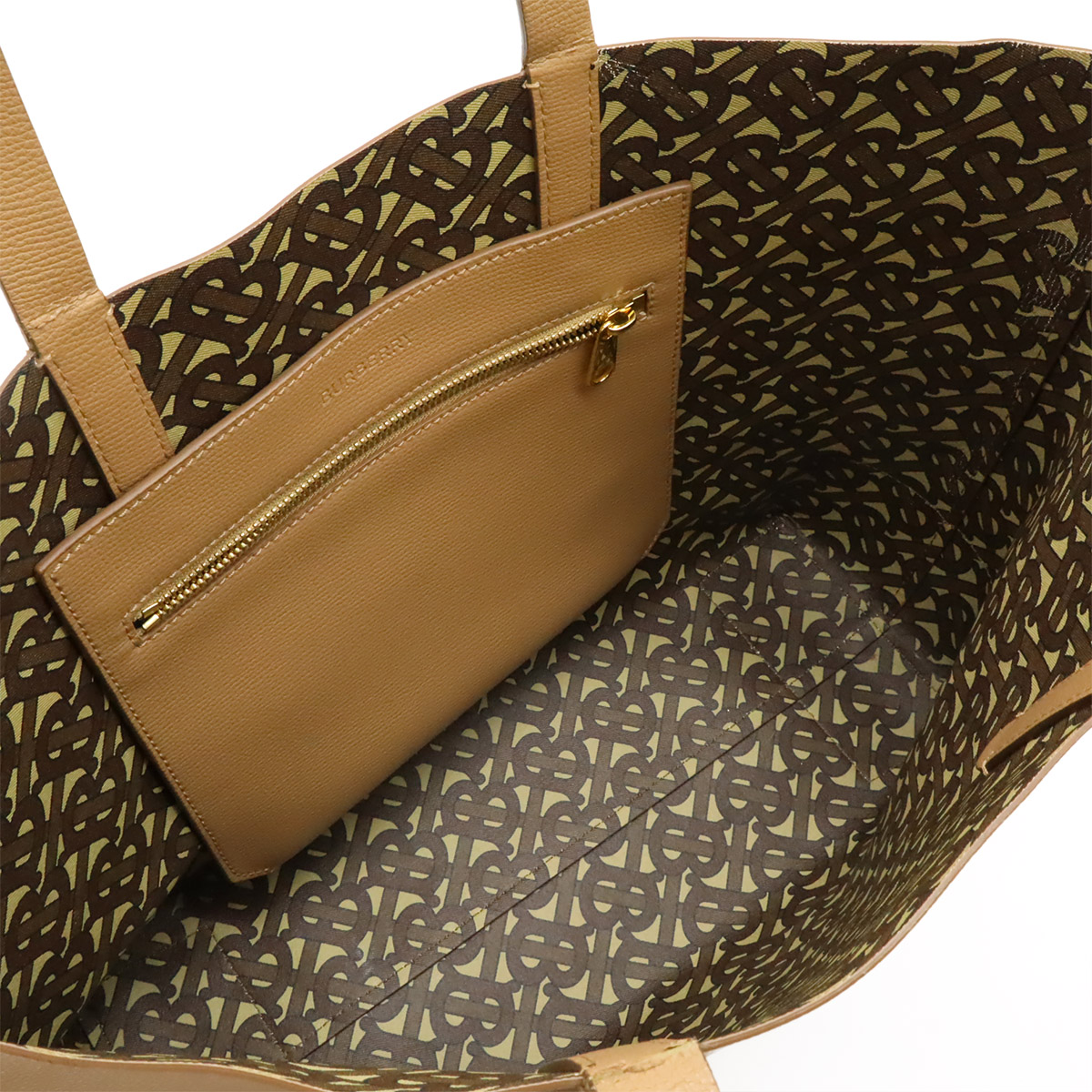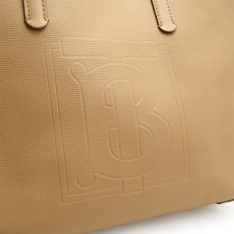 BURBERRY TB Monogram Tote Bag, Shoulder Bag, Semi-Shoulder, Beige Leather with Gold Hardware