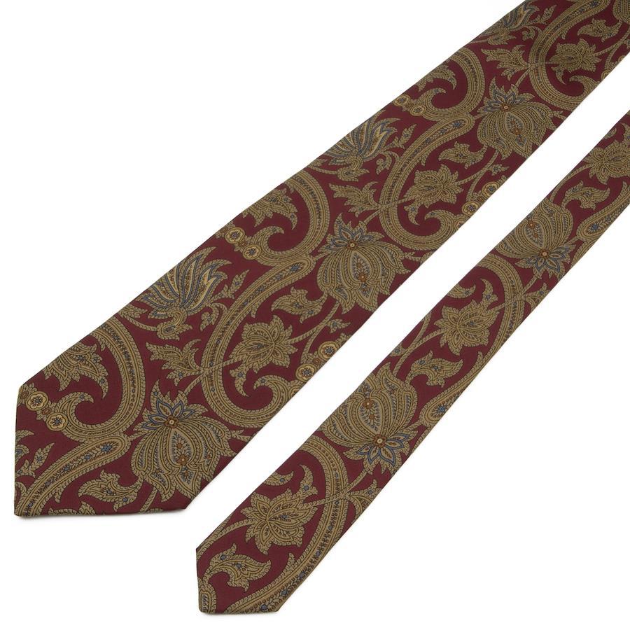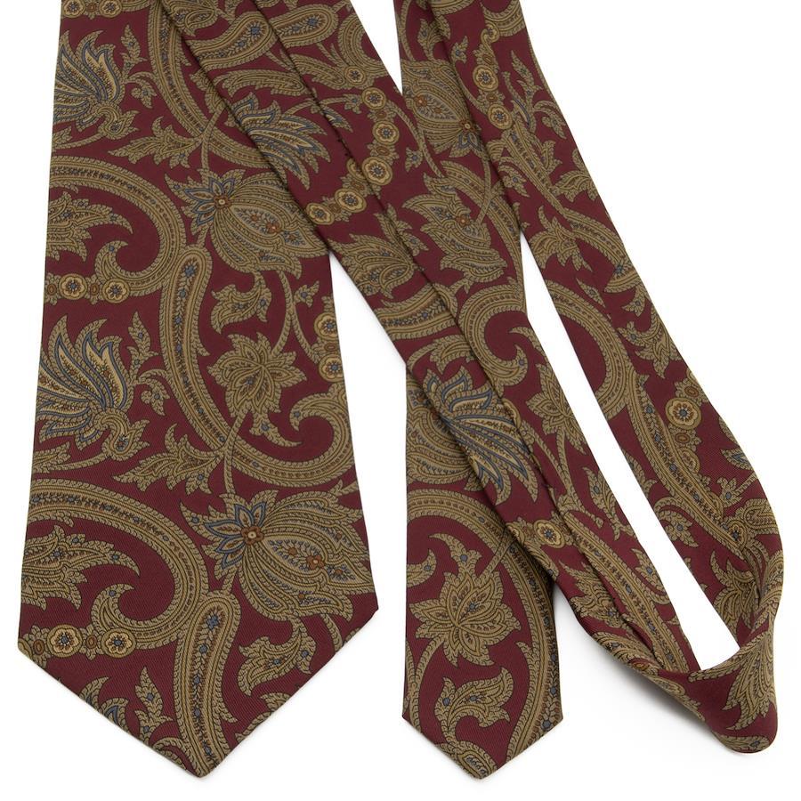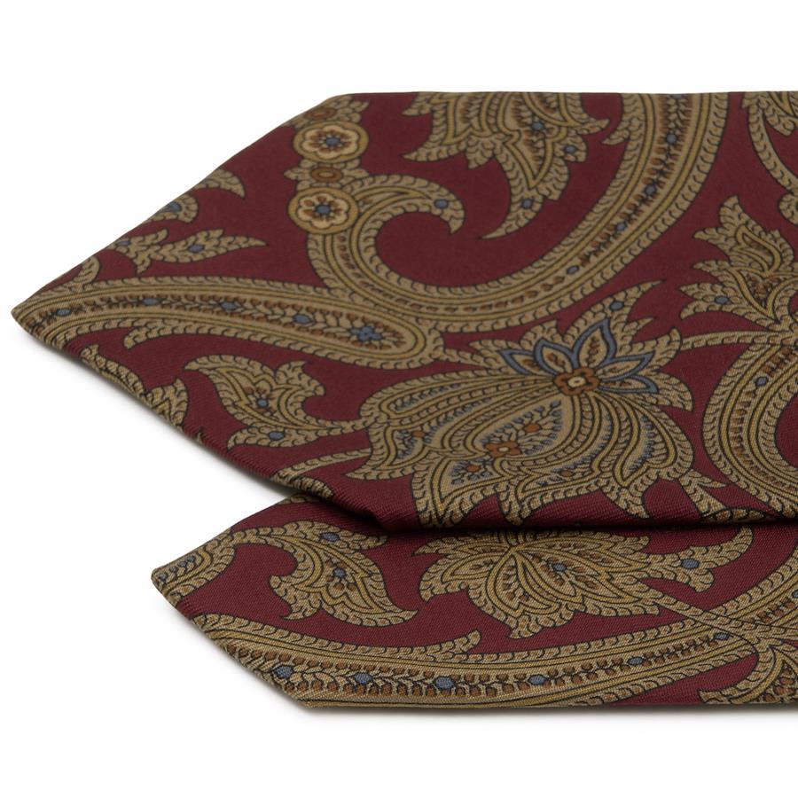 伝統的なペイズリー柄と、こっくりと深みのある色合いが、まさに正統派の英国紳士スタイルを体現しております。