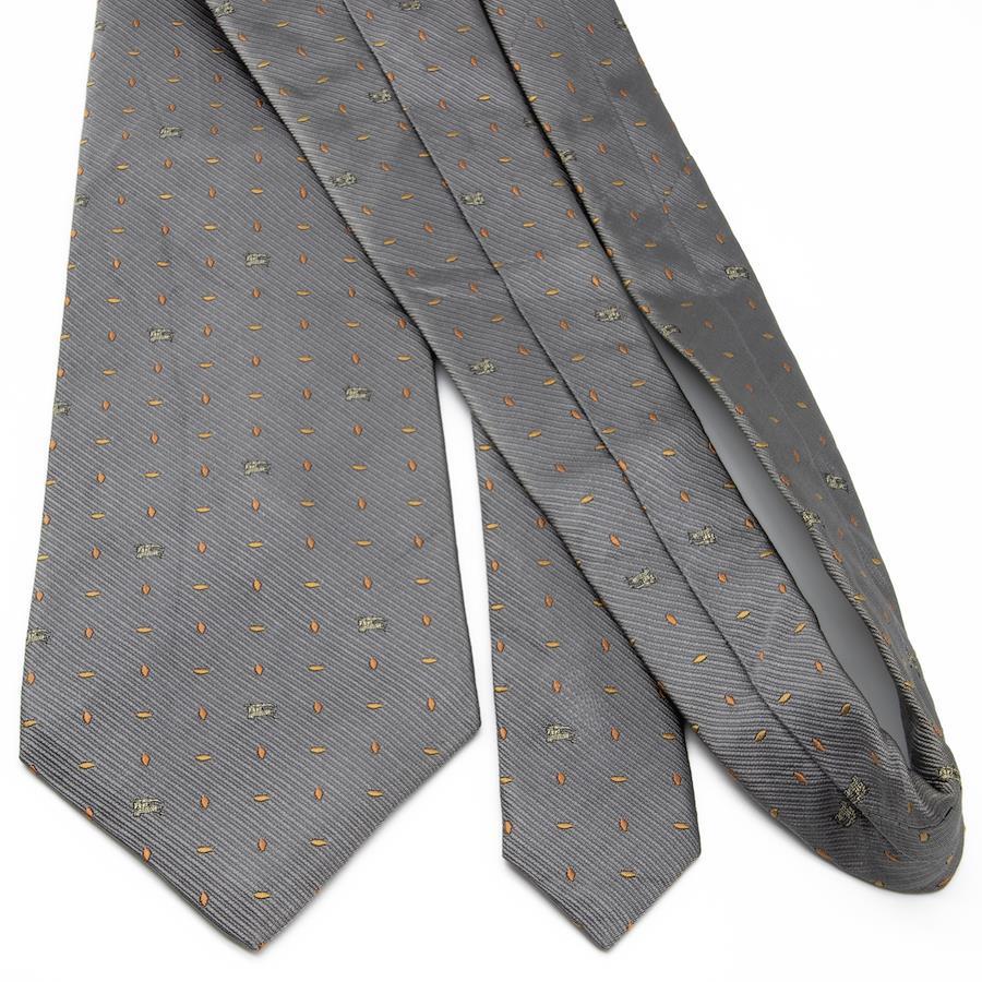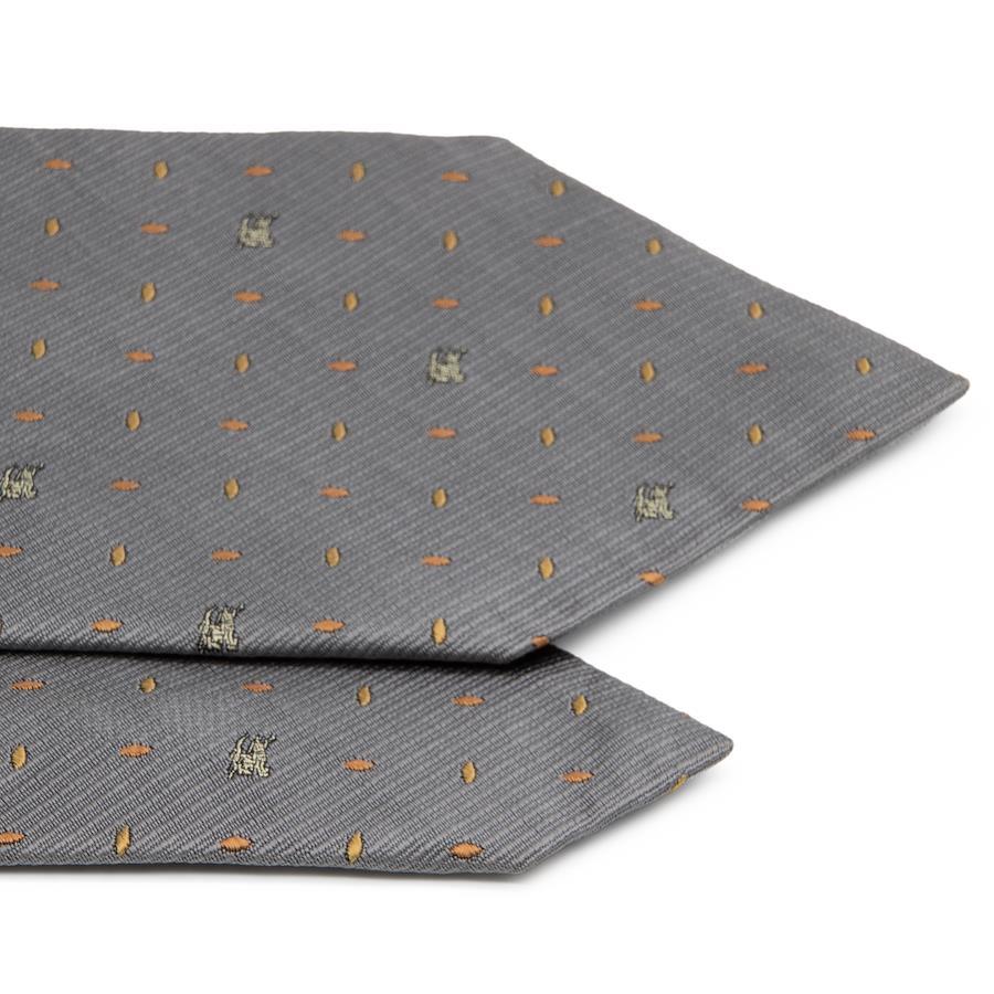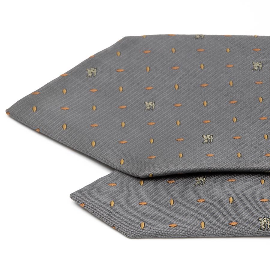 知的なグレーの地に、ブランドの象徴であるホースロゴと、温かみのあるオレンジのモチーフが散りばめられております。