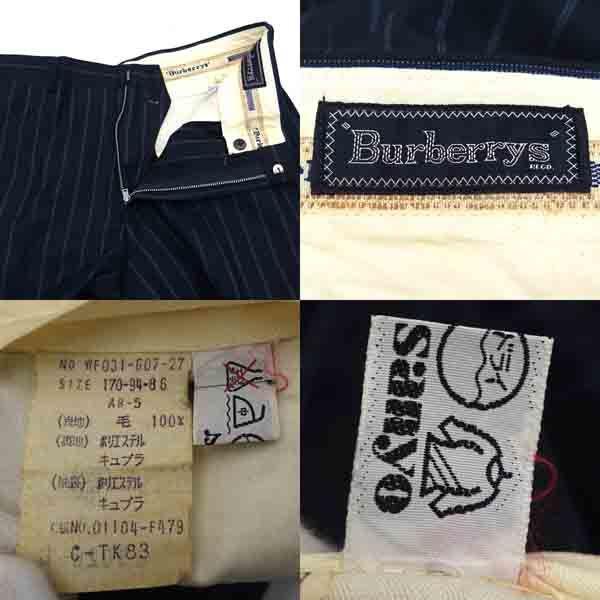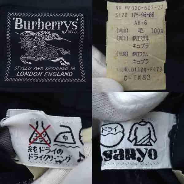 ・メーカー :BURBERRYS / バーバリーズ・製品型番 :WF030-607-27・サイズ :【上】:-,表記サイズ:175-95-88,肩幅 (約cm):44,身幅 (約cm):52,着丈 (約cm):73,袖丈 (約cm):60,【下】:-,表記サイズ:175-95-88 ,ウエスト (約cm):84,太腿幅 (約cm):32.5,股上 (約cm):29,股下 (約cm):76,裾幅 (約cm):23.5,・色(柄)の系統:ネイビー・デザイン :(メンズ)スーツ・素材 :毛100%