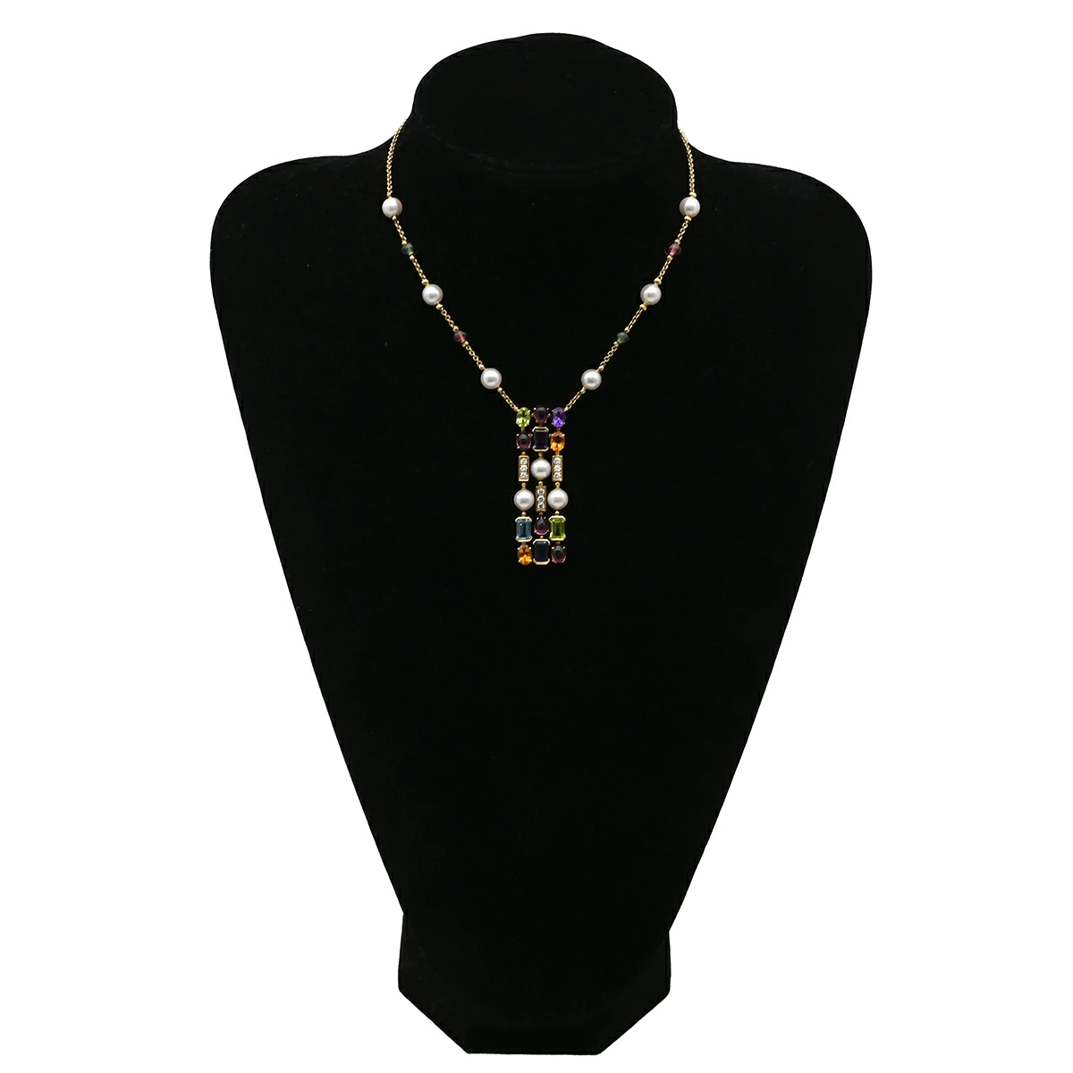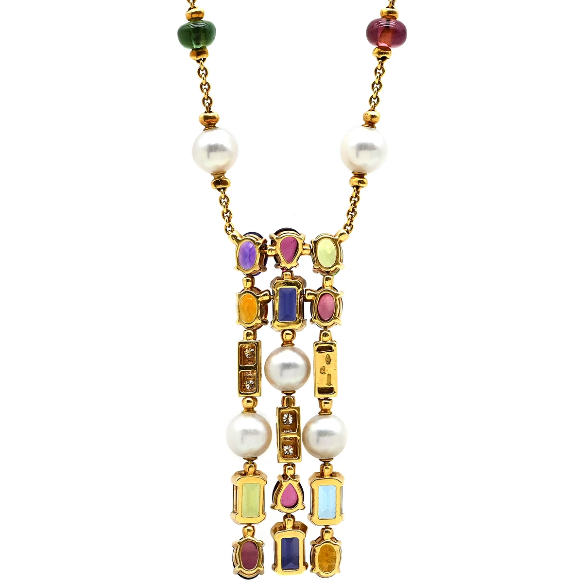 ブルガリ BVLGARI ネックレス アレグラ マルチカラー アレグラ K18YG ダイヤモンド パール マルチストーン イエローゴールド×マルチカラー Au750 18K 18金 パール ペンダント カラフル セミプレシャスストーン - レディース定番 人気 美品 【中古】