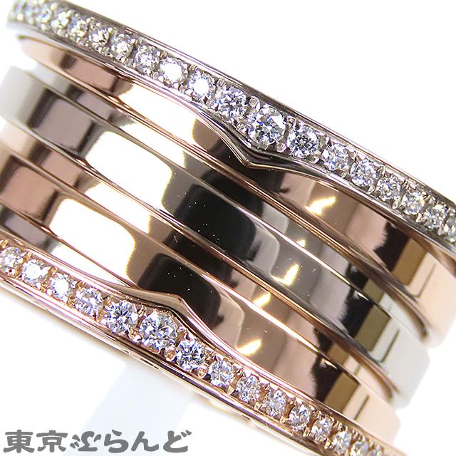 BVLGARI B.ZERO Ring, Pink Gold x White Gold, K18PGWG, Diamond, 4-Band, Size 15, 56, Polished