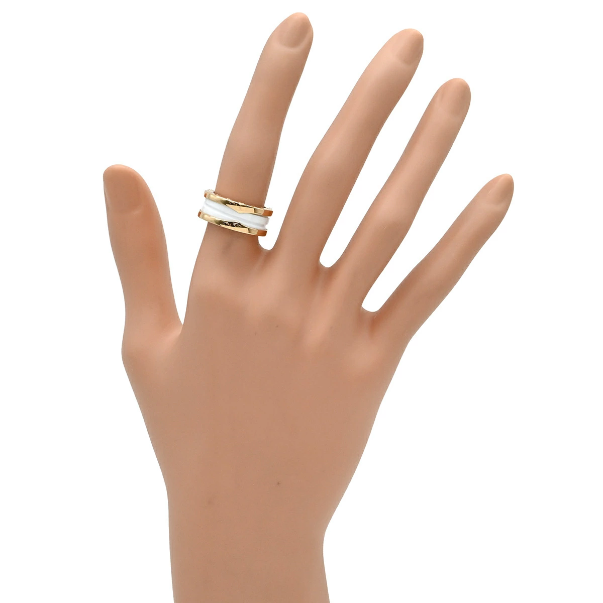 ブルガリ BVLGARI リング 指輪 ビーゼロワン B-zero1 2バンドリング ビーゼロワン K18PG セラミック ピンクゴールド×ホワイト BVLGARI Au750 18K 18金 - 11号 #51 レディース定番 人気 美品 【中古】
