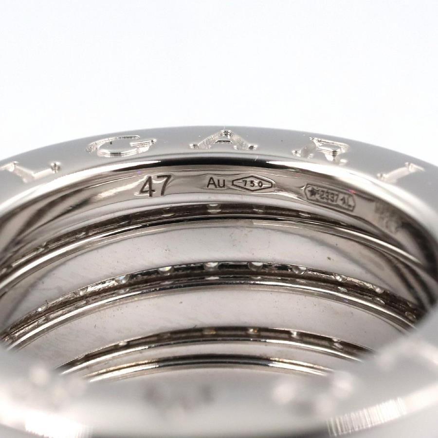 Condition Rank: ASlight signs of use, scratches, scuffs, and dirt are visible.Slight signs of use are visible. *This item has been polished, but there may be small scratches that cannot be removed. Thank you for your understanding.Brand Name: BVLGARI (BVLGARI)Product Name: B-zero1 B.ZERO1 Ring Diamond RingColor: Silver / ClearMaterial: 18K White Gold with DiamondSize: 6.5Weight: Approximately 14.6gSpecifications: -Stamp: 47Accessories: Repair Certificate*Items not listed in the accessories column are not included as a general rule.*If the item comes with an outer box, dust bag, warranty card, etc., their condition is not included in the product rank.Note: There are some signs of use. *The item has been polished, but there may be small scratches that cannot be removed. Thank you for your understanding.Individual manufacturing numbers (serial numbers) are not displayed for privacy reasons. However, they are engraved on the product.Individual manufacturing numbers (serial numbers) are not displayed for privacy reasons. However, they are engraved on the product.Other: The colors on your screen may differ from the actual colors depending on your display environment and settings. Thank you for your understanding.