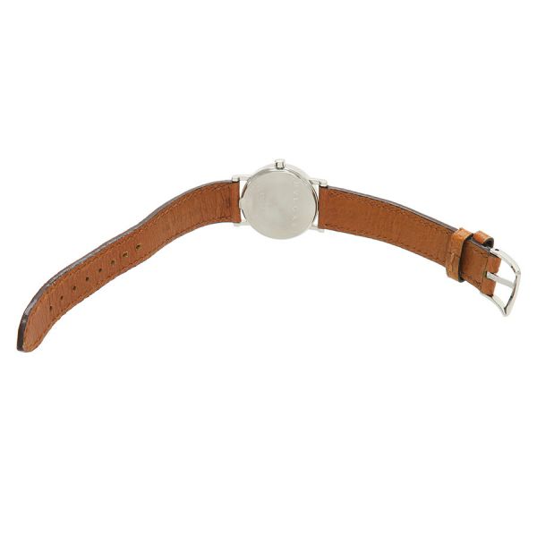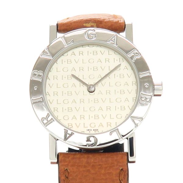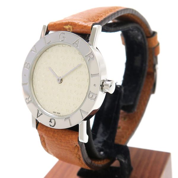 ブルガリを代表するロングセラーモデル「ブルガリブルガリ」の30mm、クオーツの旧型モデルです。時計のデザインとしては正統な形を取りながら、ベゼルに刻んだロゴが強い印象を与えるのはデザインの妙。アイボリーダイアルにBVLGARIロゴが全体に彫られ、洗練された上品さを感じさせます。当社提携の時計修理工房にて外装の仕上げと電池交換を行っております。純正ベルトは使用感ございますが、まだまだご利用頂けます。ステンレス純正尾錠