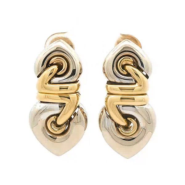 BVLGARI Doppio Cuore Earrings, 18K Yellow Gold (K18YG), Stainless Steel.