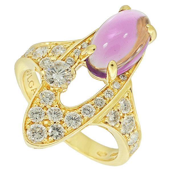 BVLGARI Elysia Amethyst and Diamond Ring, 18K Yellow Gold, Size 12
