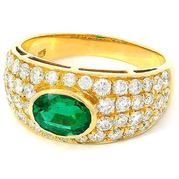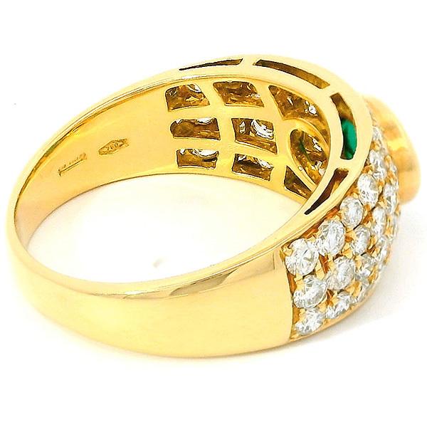 BVLGARI Emerald Pavé Diamond Ring, 18K Yellow Gold, Size 13