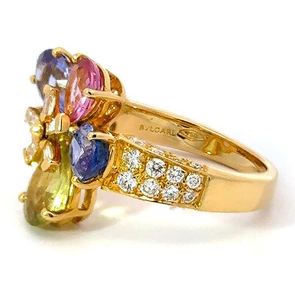 BVLGARI Flower Contrail Multicolored Sapphire and Diamond Ring, 18K Yellow Gold, Size 12