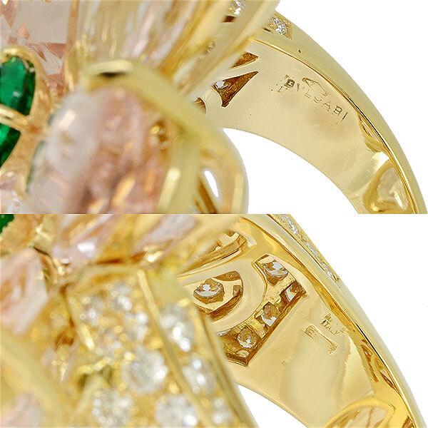 Category: JewelryType: RingBrand Name: BVLGARISize: 13Design Width: 36.6mmGemstones: Emerald, Pink Beryl, and DiamondStamp: BVLGARI 750 MADE IN ITALY 150ROMA *The stamp may be faint in some areas.Weight: 31.8gMaterial: 18K Yellow Gold (K18YG)List Price: UnknownAccessories: Original box, sorting, GIA certificate, and repair certificateCondition: A