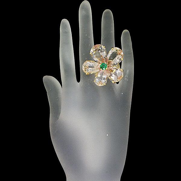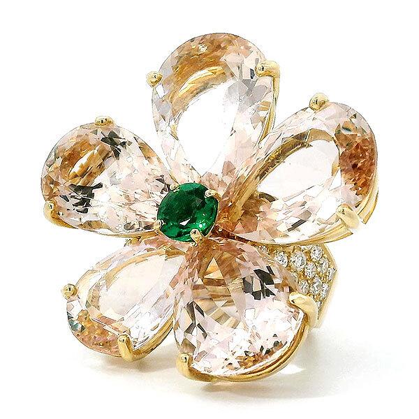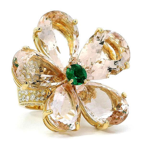 BVLGARI BVLGARI Flower Emerald, Pink Beryl and Diamond Ring, 18K Yellow Gold, Size 13. #6.1/4(US) / 53(EU) / 13(JP) P0044694