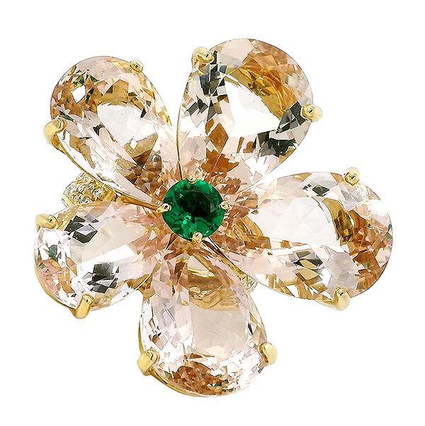 Product Name: Flower Emerald, Pink Beryl, and Diamond Ring