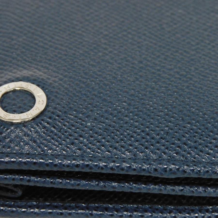 | ブルガリのロゴプレートがあしらわれた、型押しカーフレザーにライニングカラーを組み合わせた「ブルガリマン ビジネス カードホルダー」フラップ式二つ折りカードケースです。 |