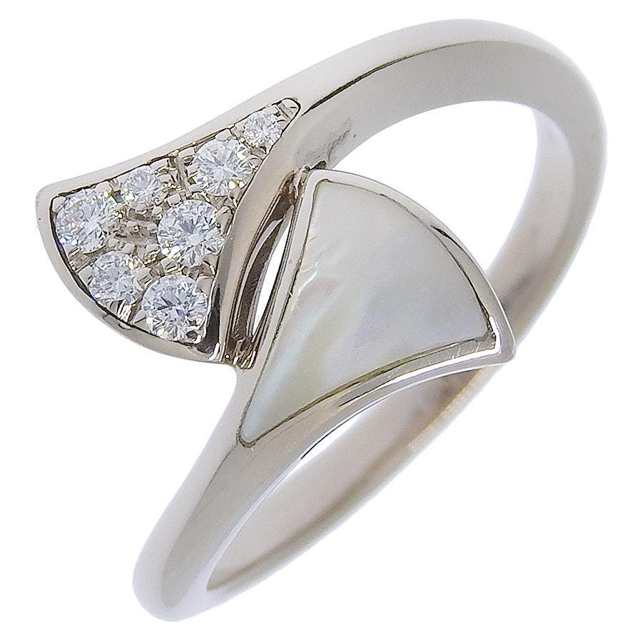 BVLGARI BVLGARI Theiva Dream Ring, 18K White Gold with Diamonds and Mother-of-Pearl, Size 9, Approx. 2.9g, Pre-owned, Women's