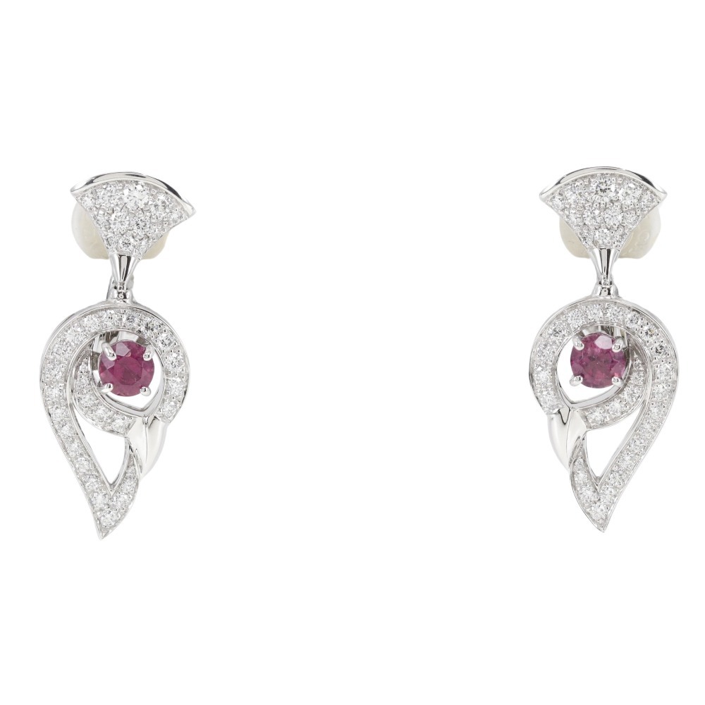 BVLGARI DIVAS' DREAM Earrings, 18K White Gold with Rubellite Tourmaline and Diamonds, Approx. 14.4g, Pre-owned, Women's