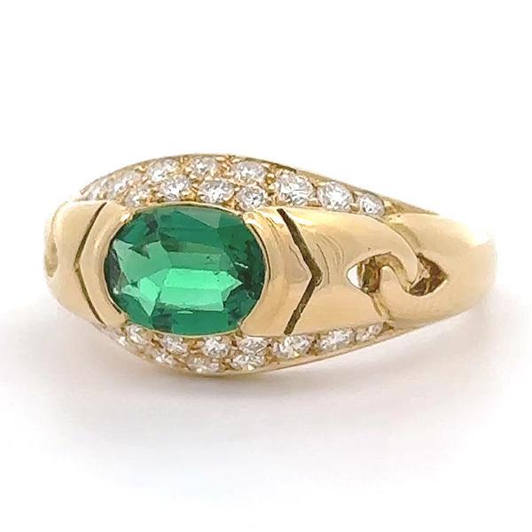 BVLGARI Emerald Diamond Ring, 18K Yellow Gold, Size 12.