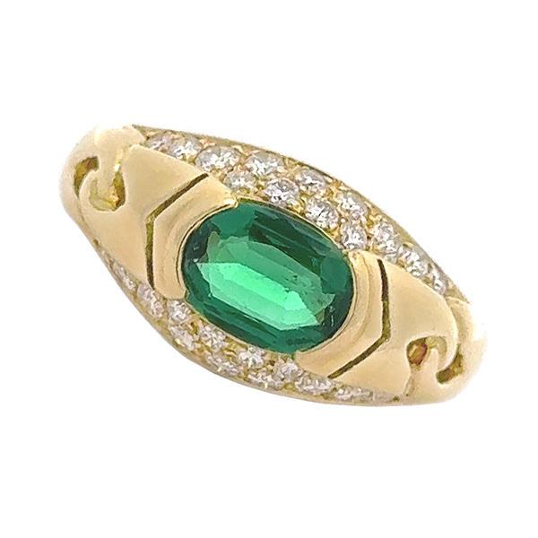 BVLGARI Emerald and Diamond Ring, 18K Yellow Gold, Size 12. #6(US) / #52(EU) / #12(JP) P0044563
