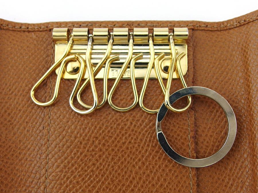 ■管理番号:T19264■ブランド:ブルガリ BVLGARI■商品名:ロゴボタン■表記カラー:ライトブラウン ゴールド■カラー:ライトブラウン ゴールド■形:キーケース■性別:レディース■サイズ:■仕様:■備考:[開口部]ボタンホック[内側]キーフック×6両開きポケット×1オープンポケット×1幅:約10.3cm高さ:約6.5cm~7cmマチ:約1.2cm■付属品:なし※写真・説明段に表記されている付属品以外は付属しておりません。■状態ランク:【8】美品 ※多少の傷、汚れがあるが非常に良好な美品