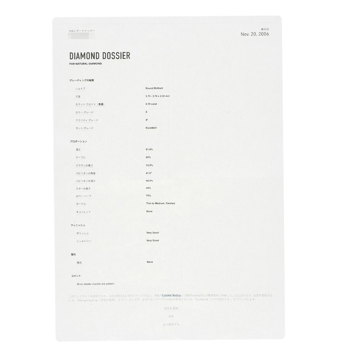 | 付属品 | GIAレポート |