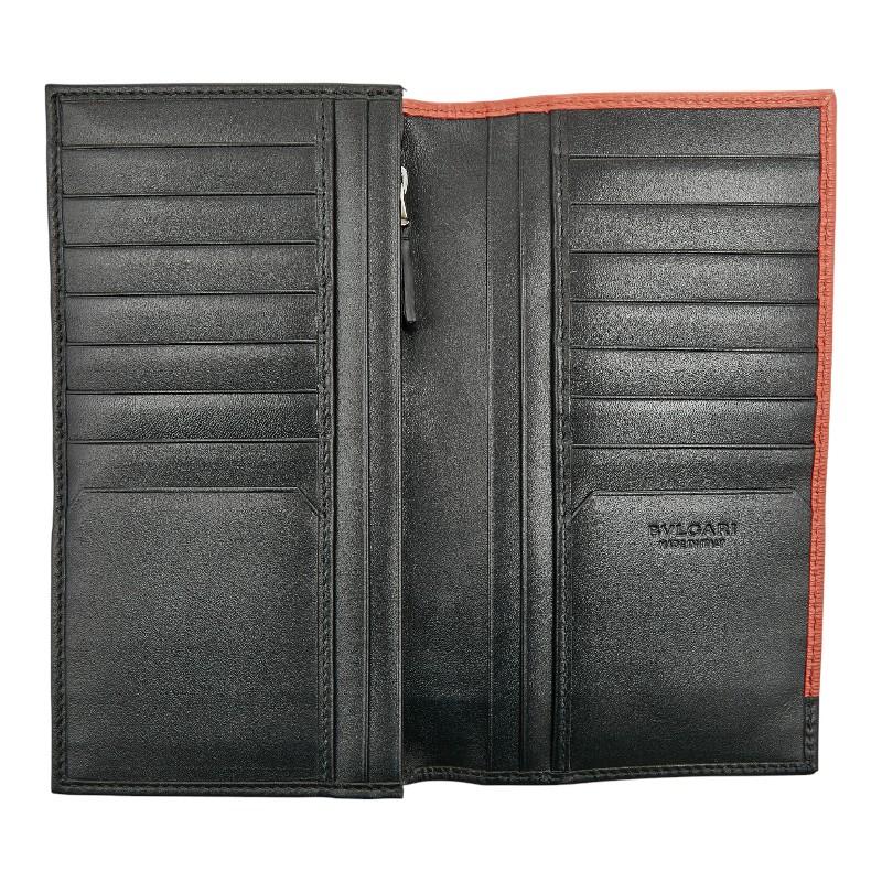 - ブルガリ オクト 長財布 オレンジ ブラック レザー メンズ BVLGARI 【中古】