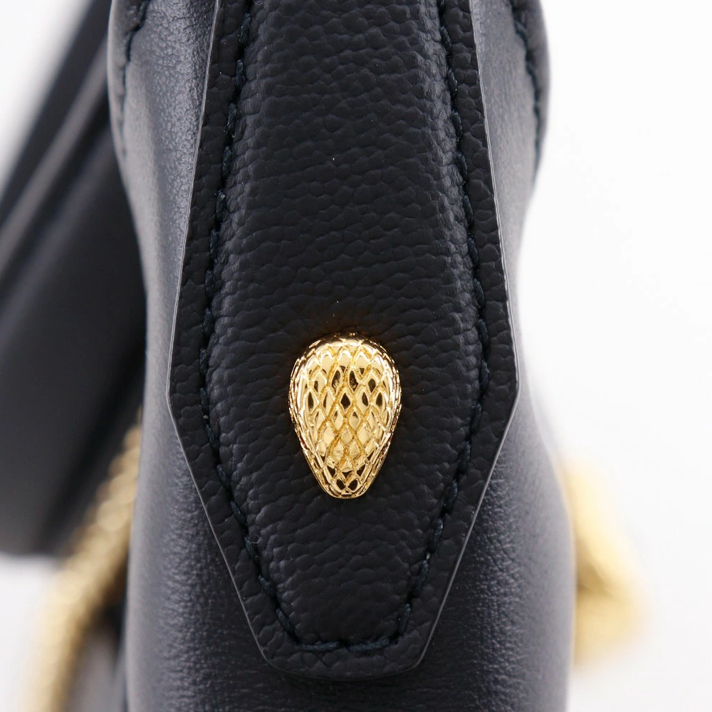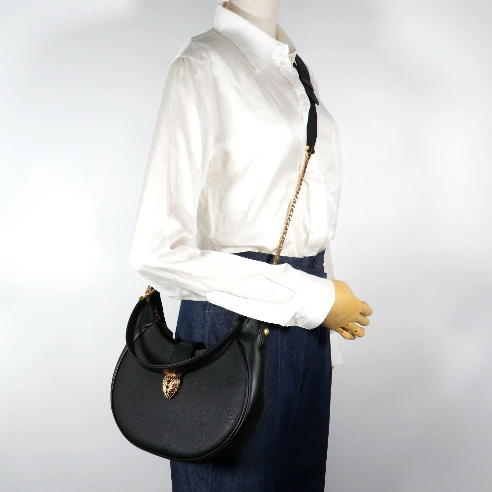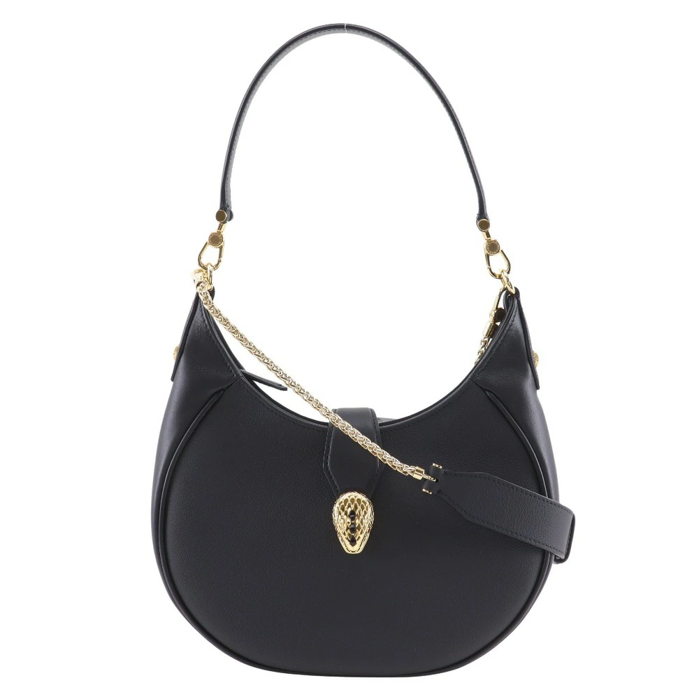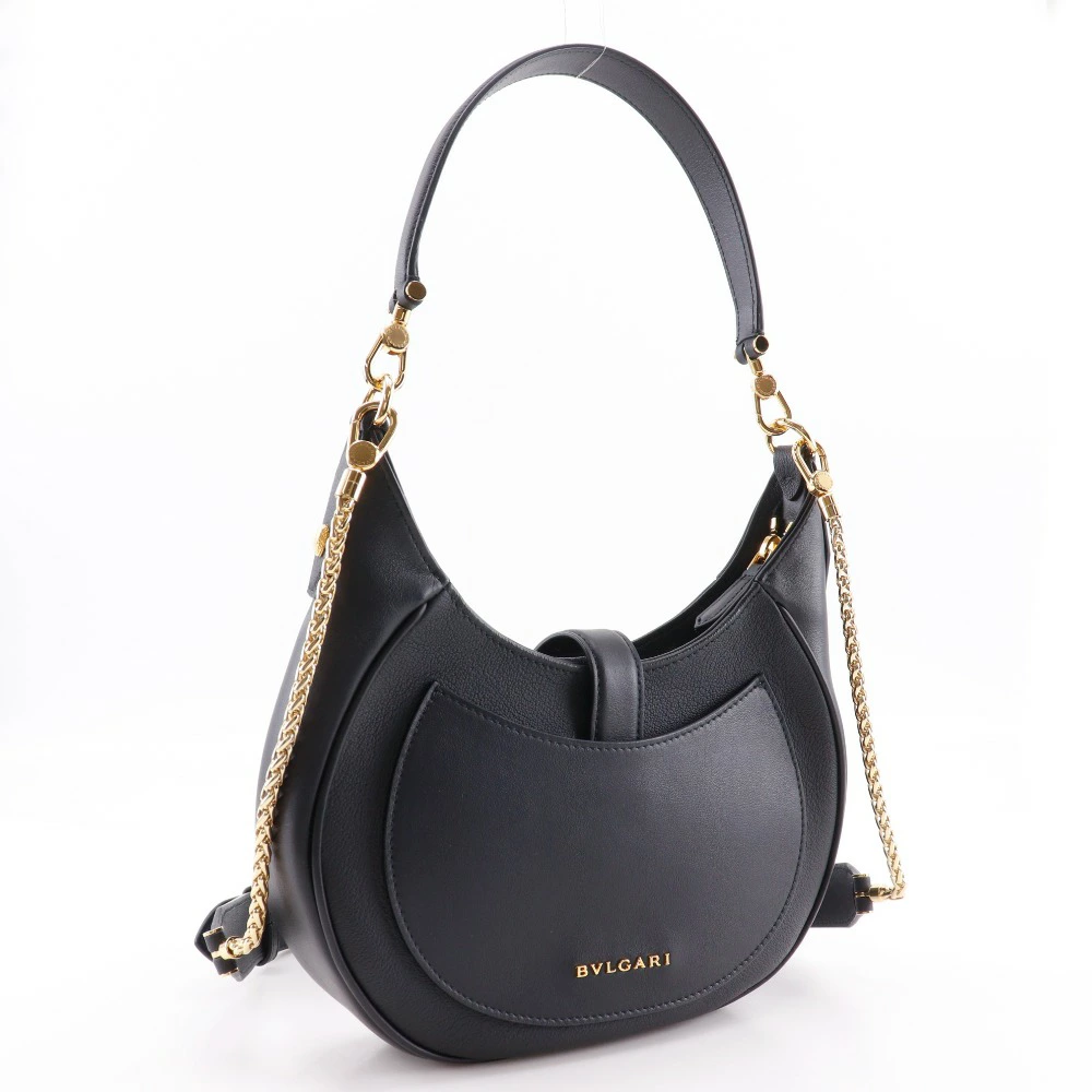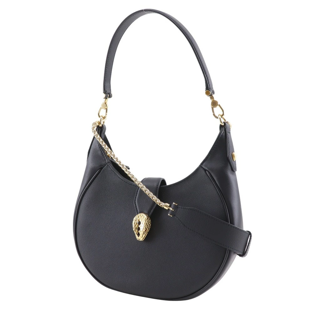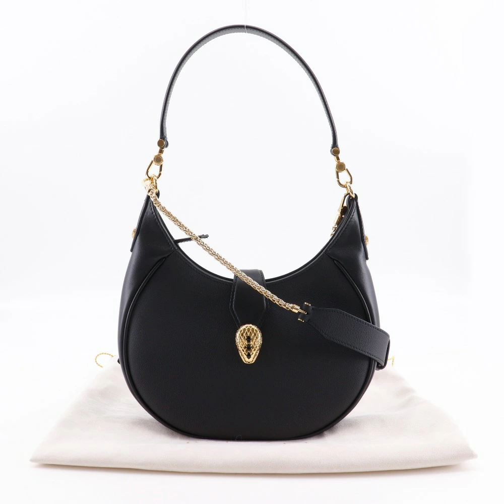 Bvlgari Serpenti Ellipse Half Moon Shoulder Bag 291953, Black Leather, Crossbody/Shoulder Bag with Magnetic closure, Women's, Pre-owned, A+ Rank