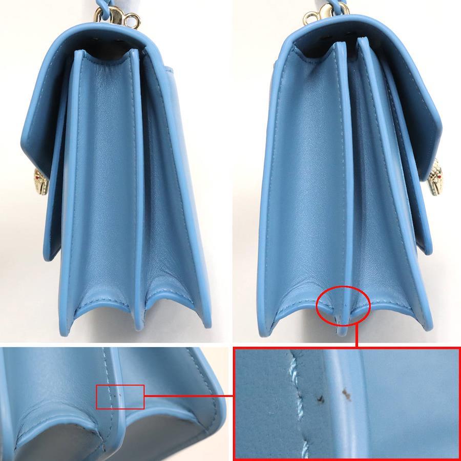 ブルガリのセルペンティ フォーエバー 2wayクロスボディバッグ ブルー(291469)の中古品です。バッグ正面から見て左側面下部と右側底部に傷があります。(写真3 5枚目)内側底部にわずかに擦れがあります。購入証明書が付属しますが無記入で、店舗登録がされていません。NFC ICチップが内蔵されています。+---+---+---+---+---+。{状態}外側AB内側A{素材}レザー{サイズ}約W20cm × H15cm × D8cm。{その他}内ポケット×2。{付属品}保存袋,冊子,購入証明書(未記入),手鏡,レインカバー{お問合せ商品番号}25066018+---+---+---+---+---+。