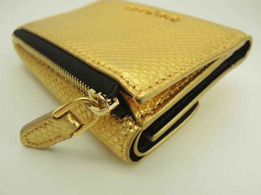 品名 : ミニウォレット コンパクト財布 三つ折り財布 スモールウォレット トリフォルドメーカー : ブルガリ(BVLGARI)型番・素材 : 型押しレザーライン・色 : セルペンティ フォーエバー ゴールド ゴールド金具参考定価 : 99000円サイズ : W9.5 x H7.8 x D3 cm製造番号 : 元から無し総重量 : 73g 本体重量 : 72g付属品 : 写真の中に写っているものです