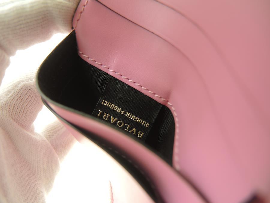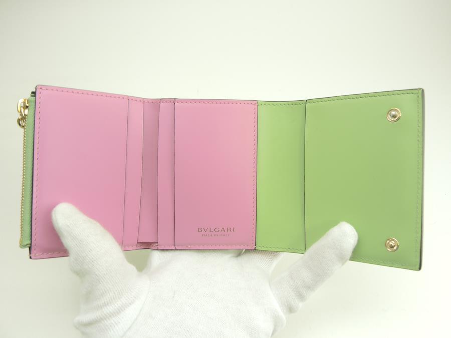 品名 : ミニウォレット コンパクト財布 三つ折り財布 スモールウォレット トリフォルドメーカー : ブルガリ(BVLGARI)型番・素材 : スムースカーフレザーライン・色 : セルペンティ パステルピンク ゴールド金具参考定価 : 不明サイズ : W9.5 x H8.3 x D3 cm製造番号 : IC総重量 : 96g 本体重量 : 96g付属品 : 写真の中に写っているものです