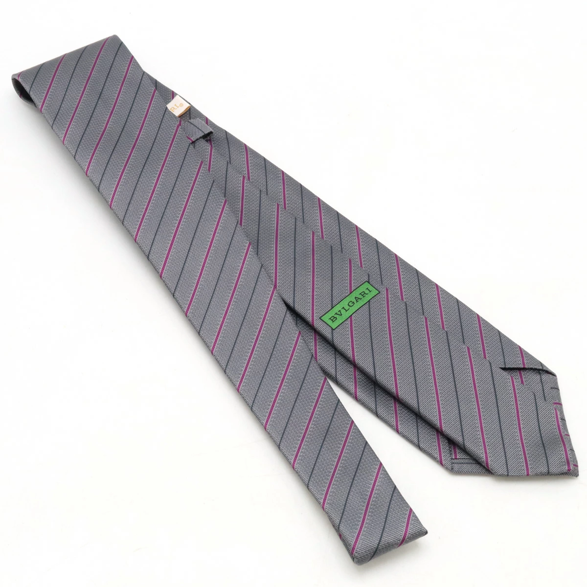 裏地を使わず、7つ折りに仕立てられたブルガリのセブンフォールドのネクタイ。