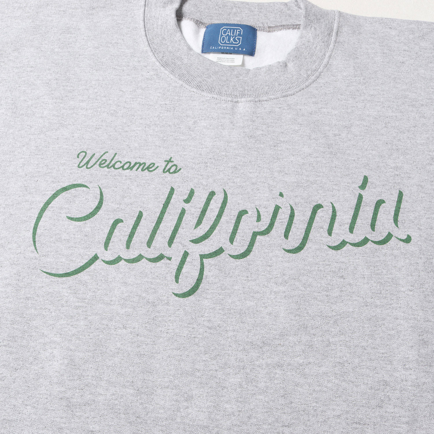 | 商品説明 | コットンポリエステル混紡裏起毛スウェット生地を使用し、フロントに"Welcome to California"ロゴプリントがあしらわれたクルーネックスウェットです。 |