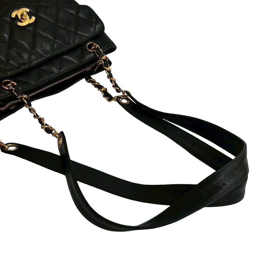 Card with sticker, No. 4 CHANEL Matelasse Coco Caviar Leather Chain Semi Shoulder Bag, Black, 258-6