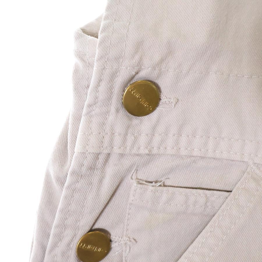 ■商品情報[商品番号]9025H160006[ブランド]CARHARTT(カーハート)[モデル]90-00S VINTAGE ヴィンテージ フロントロゴ オーバーオール ベージュ[サイズ]平置き採寸 総丈:141センチ 身幅:39センチ 肩幅:23.5センチ 平置き採寸 ウエスト:41センチ ワタリ:31.5センチ 股上:34センチ 股下:80.5センチ 裾幅:23.5センチ表記サイズ:‐■状態・コンディション[状態ランク]ランク B使用感有り前身頃中央部分/後身頃上部に汚れ有り金属部分全体的にくすみ有り[備考]ビンテージ商品のためダメージがございます。