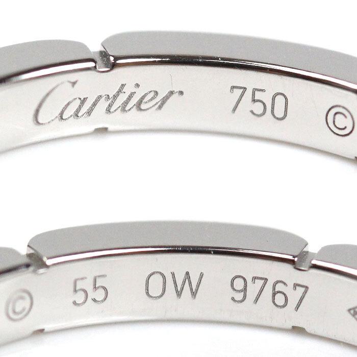 Brand: CARTIERProduct Name: Maillon Panthère 4-Diamond RingType: Women'sModel Number: B4080455Material: 18K White GoldStamp: Cartier 750 55Ring Size Approximately size 14.5 (stamped size #55)Top width: Approximately 2.5mmBottom thickness: Approximately 2.0mmJAPAN: Approximately size 14.5 (closer to size 15)EU: 54.5US: 7.5Stamp: 55Country of origin: FranceWeight: Approximately 4.4gAccessories: NoneSuggested Japanese retail price: ¥368,500 (tax included)Specifications: Stones: Diamond4 diamonds (total 0.05ct) Manufacturer's markingsCondition: Rank ASlight signs of use, but in good conditionAlthough polished, there are some minor scratches that cannot be removed. Please note that as this is a display item, there may be discoloration, minor wear, or minor scratches.