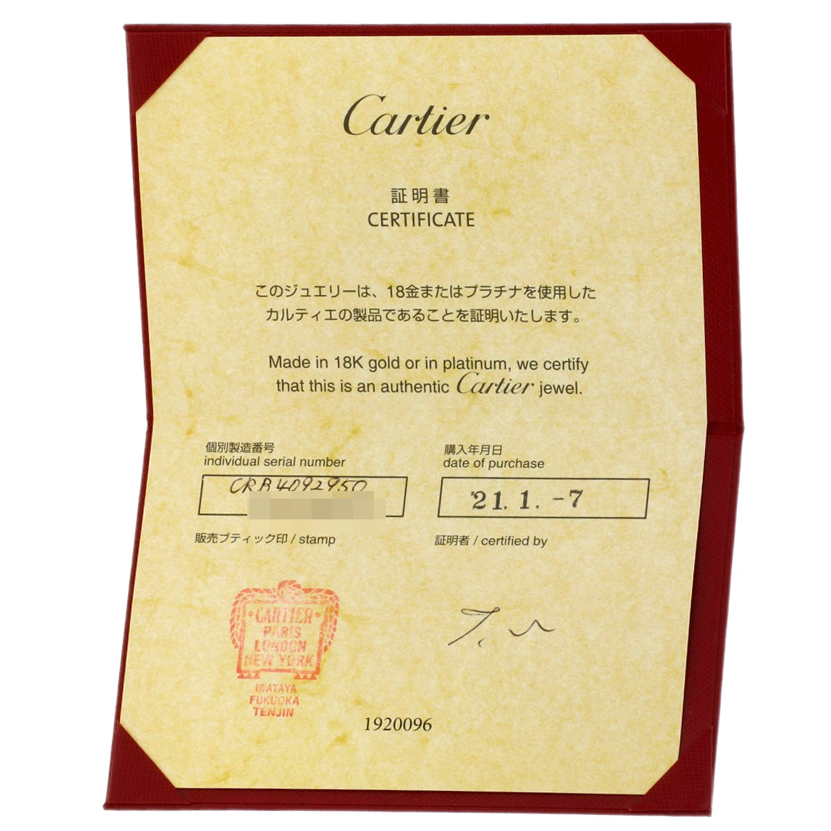 | 付属品 | カルティエ保証書 |