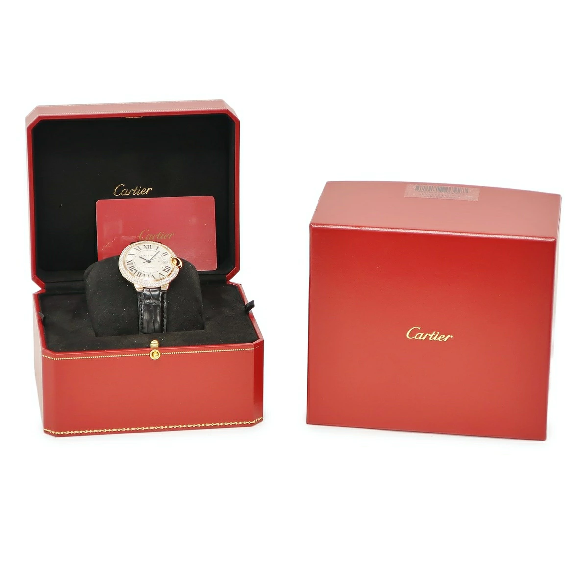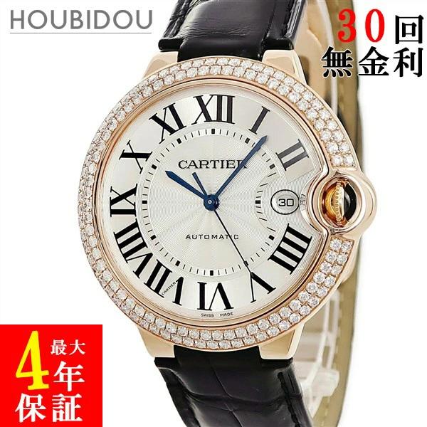 カルティエ Cartier バロンブルー ドゥ カルティエ WE900851 K18PG無垢 純正ダイヤ ローマン メンズ 腕時計自動巻き シルバー 【中古】【店頭受取不可】