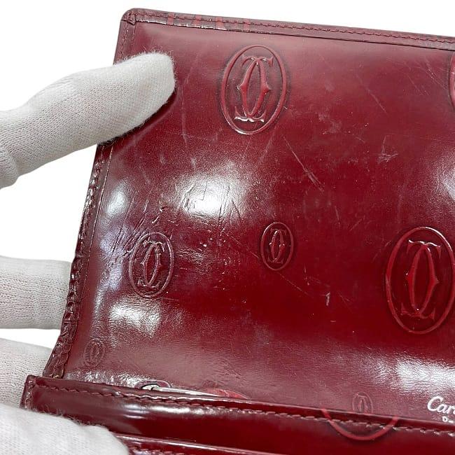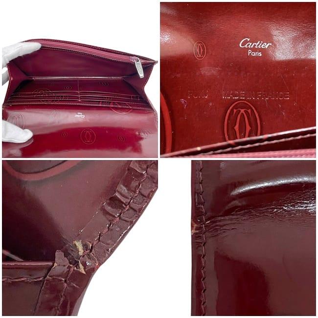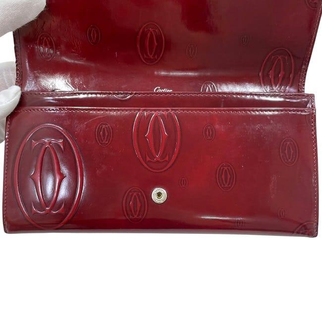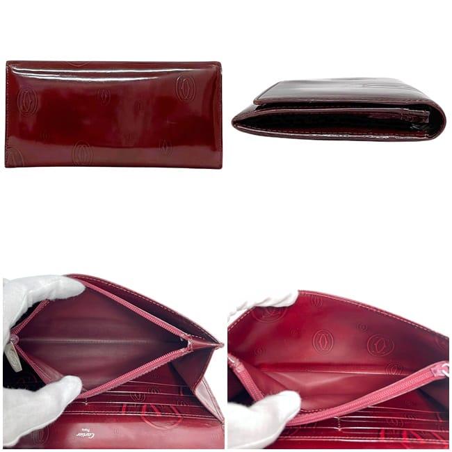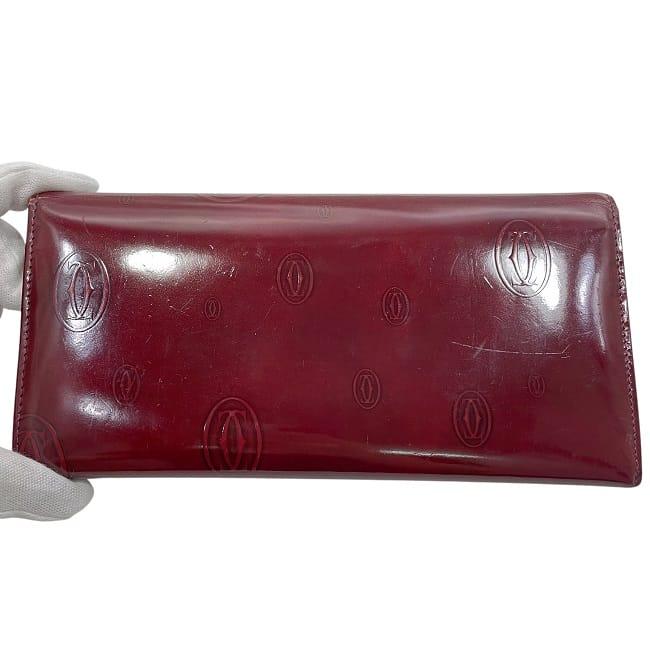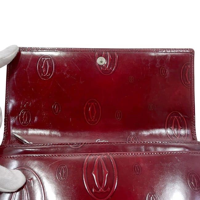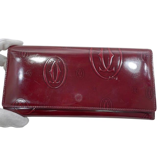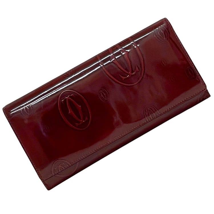 カルティエ 二つ折り 長財布 ec-23820 ボルドー ハッピーバースデー L3000722 美品 財布 レザー 中古 Cartier ロング 赤 ウォレット マスト ロゴ ヴィンテージ メンズ レディース 定番 人気 ロングウォレット ワインレッド ブランド 本物 鑑定済み